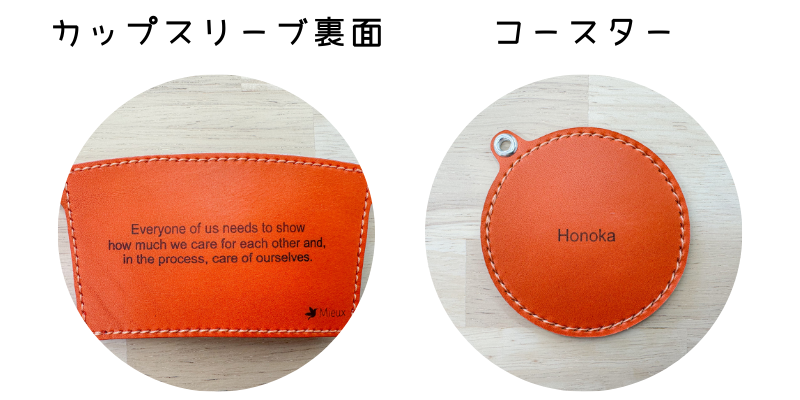 カップスリーブの裏面や、コースターにも追加オプションで刻印可能!