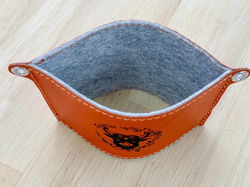 レザーが傷つかないよう不織布に包んで、高級感のあるエンボス加工の箱に詰めてお届けさせていただきます。